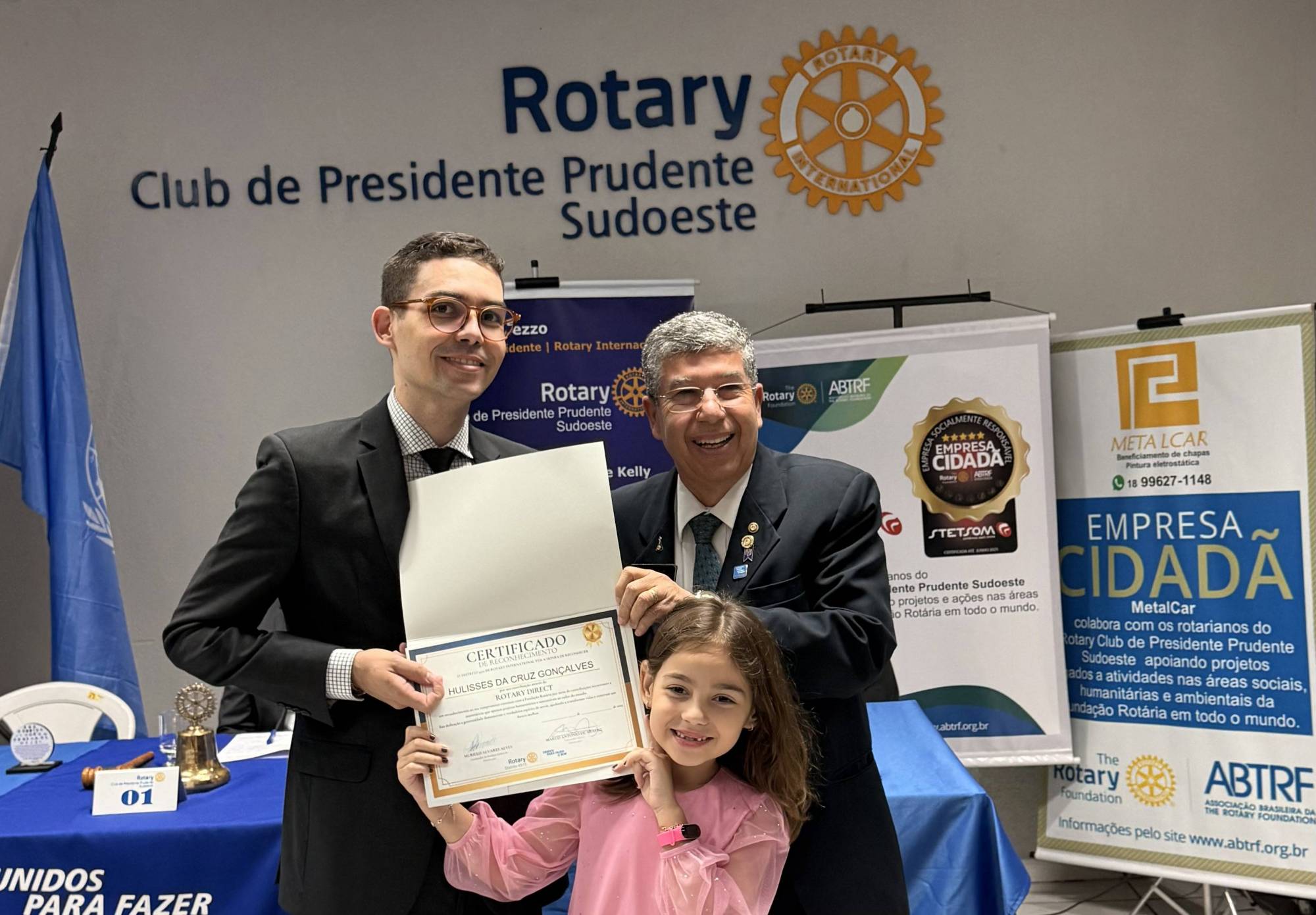 O companheiro Hullisses Gonçalves recebeu, das mãos do governador, um certificado de homenagem em reconhecimento por sua participação ativa no programa Rotary Direct — uma modalidade de doação contínua à Fundação Rotária, realizada por meio de débito mensal no cartão de crédito.