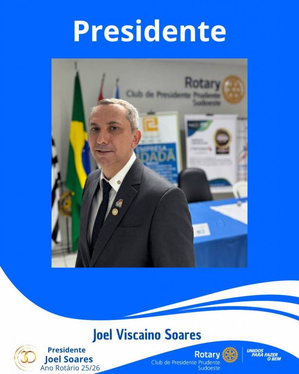 Quase dois meses de gestão já se passaram, e o Rotary Club de Presidente Prudente Sudoeste tem a satisfação de apresentar oficialmente o seu Conselho Diretor da gestão 2025-26, liderado pelo presidente Joel Viscaino Soares.
