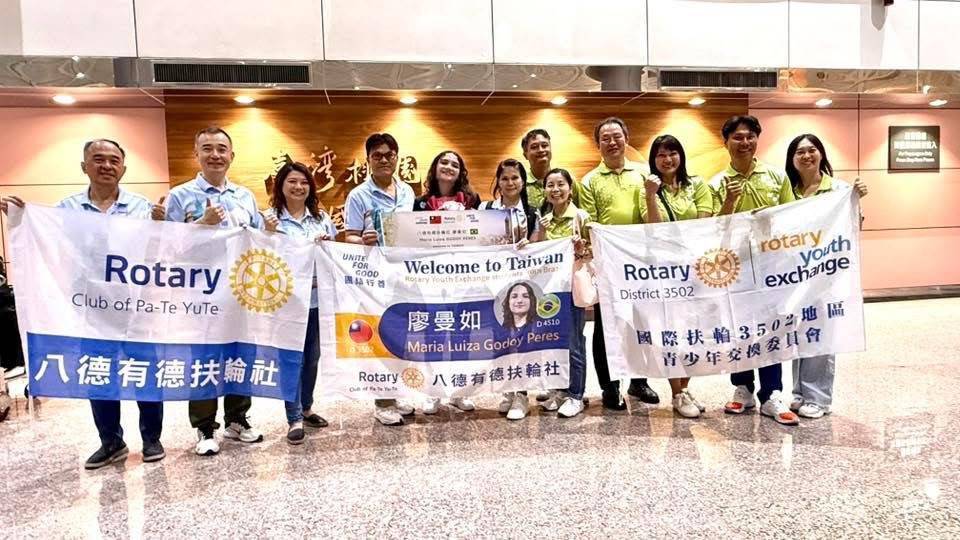 A jovem intercambista Maria Luiza Gooby Peres, carinhosamente chamada de Malu, foi recebida com entusiasmo e carinho no aeroporto de Taiwan por representantes do Rotary Club de Pa-Te Yu’e, do Distrito 3502, e por sua família anfitriã. A recepção calorosa, repleta de sorrisos, faixas e espírito rotário, marcou o início oficial de sua jornada internacional pelo Programa de Intercâmbio de Jovens (YEP).