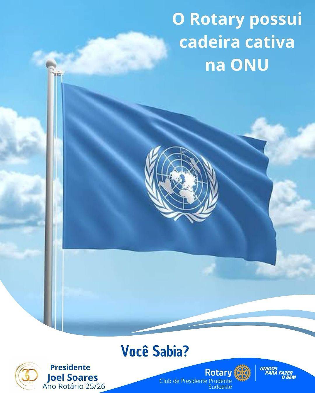Desde 1945, o Rotary International ocupa uma posição singular e honrosa no cenário global: é a única organização não governamental (ONG) a possuir cadeira cativa na Organização das Nações Unidas (ONU). Esse reconhecimento não é apenas simbólico — ele reflete décadas de parceria, alinhamento de valores e atuação conjunta em prol da paz, da saúde, da educação e do desenvolvimento sustentável.
