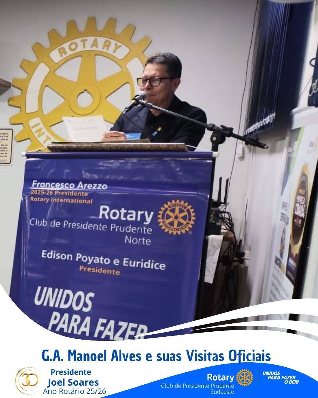 Para o clube Sudoeste, é motivo de profundo orgulho ver seu companheiro Manoel Alves exercer com excelência o papel de Governador Assistente no Distrito 4510. Sua atuação representa o compromisso, a seriedade e o espírito de serviço que definem nossa trajetória há mais de 30 anos.