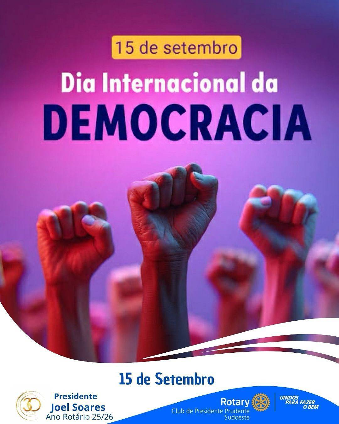 Neste 15 de setembro, reafirmamos nosso compromisso com a democracia como caminho para um mundo mais justo, solidário e humano. Que cada gesto de serviço seja também um ato de cidadania.