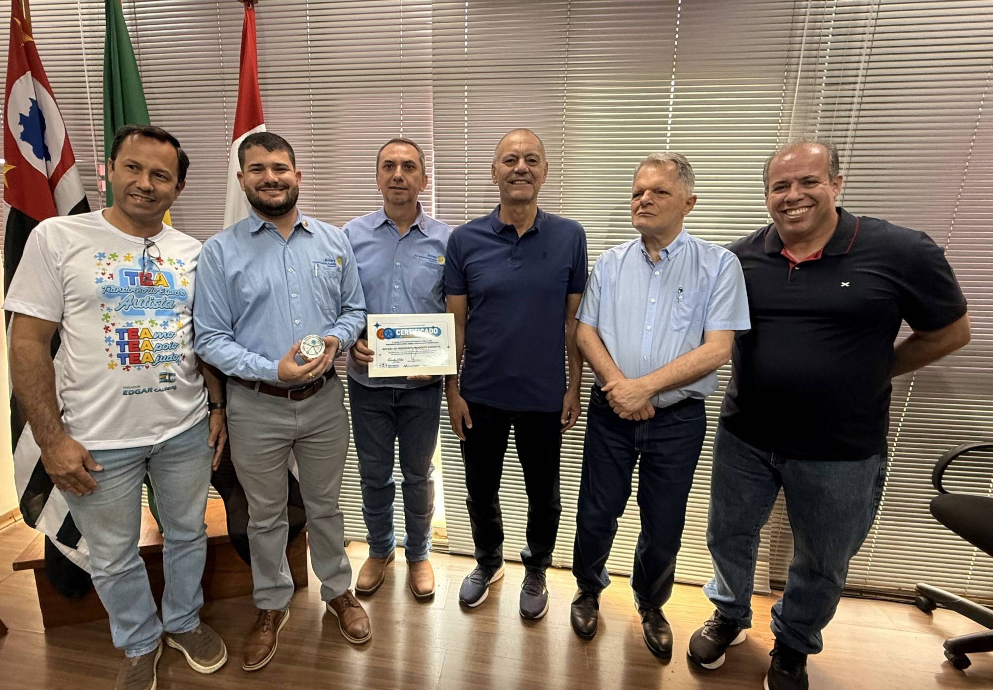 Na manhã desta sexta-feira, 19 de setembro de 2025, o Rotary Club de Presidente Prudente Sudoeste viveu um momento de grande honra e responsabilidade. O presidente do clube, Joel Viscaino Soares, acompanhado pelo presidente da Comissão de Imagem Pública, Gabriel Stuani, esteve na Prefeitura Municipal de Presidente Prudente para receber, das mãos do prefeito Milton Carlos de Mello – Tupã, o Selo Prudente Inclusiva 2025, certificado de responsabilidade social concedido às instituições que se destacam na promoção dos direitos das pessoas com deficiência.