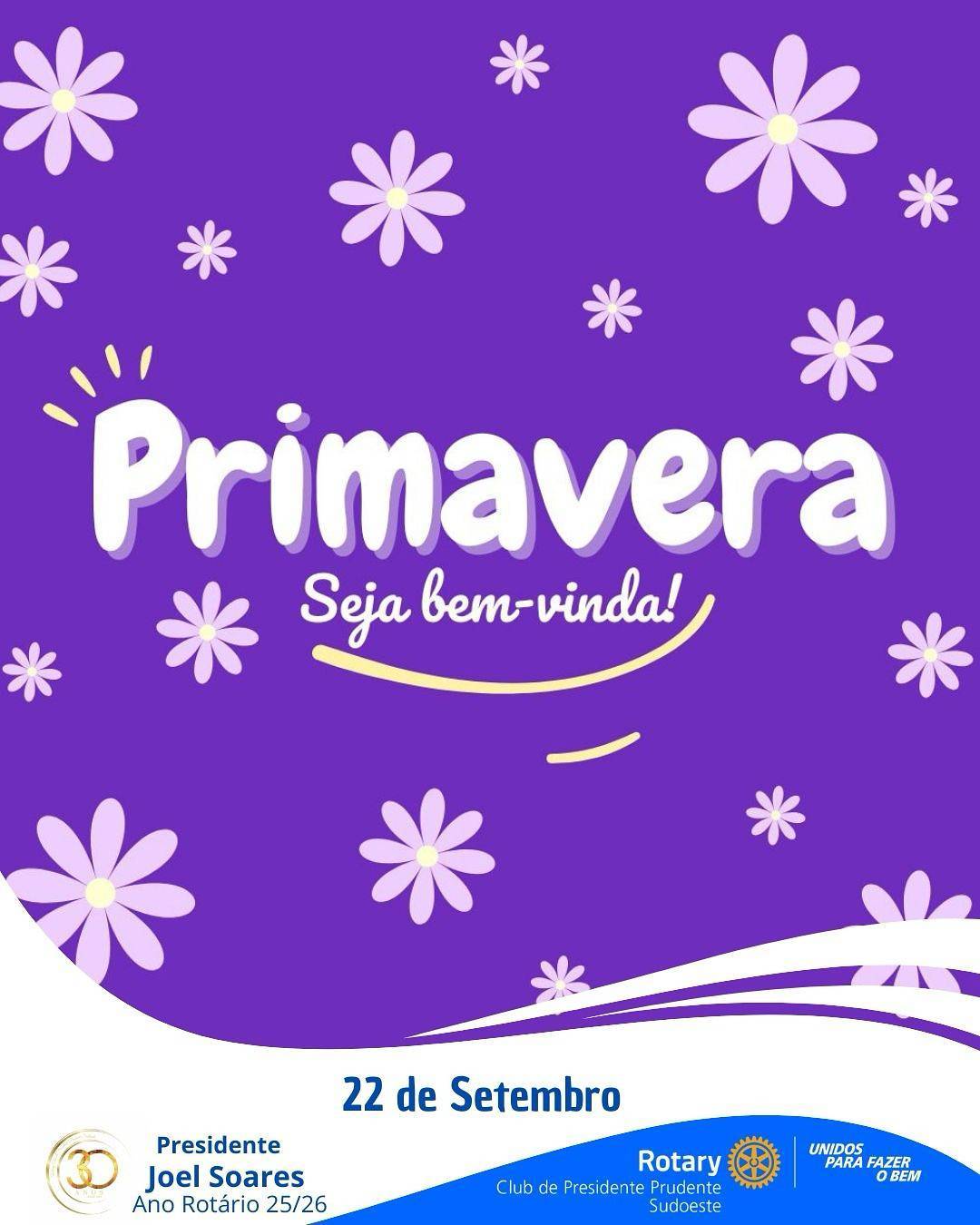 A primavera é mais do que uma mudança climática — é um convite à leveza, à contemplação e à conexão com a natureza. E o Rotary Club de Presidente Prudente Sudoeste celebra essa chegada com o mesmo entusiasmo com que abraça cada novo projeto: com propósito, esperança e vontade de florescer junto à comunidade.