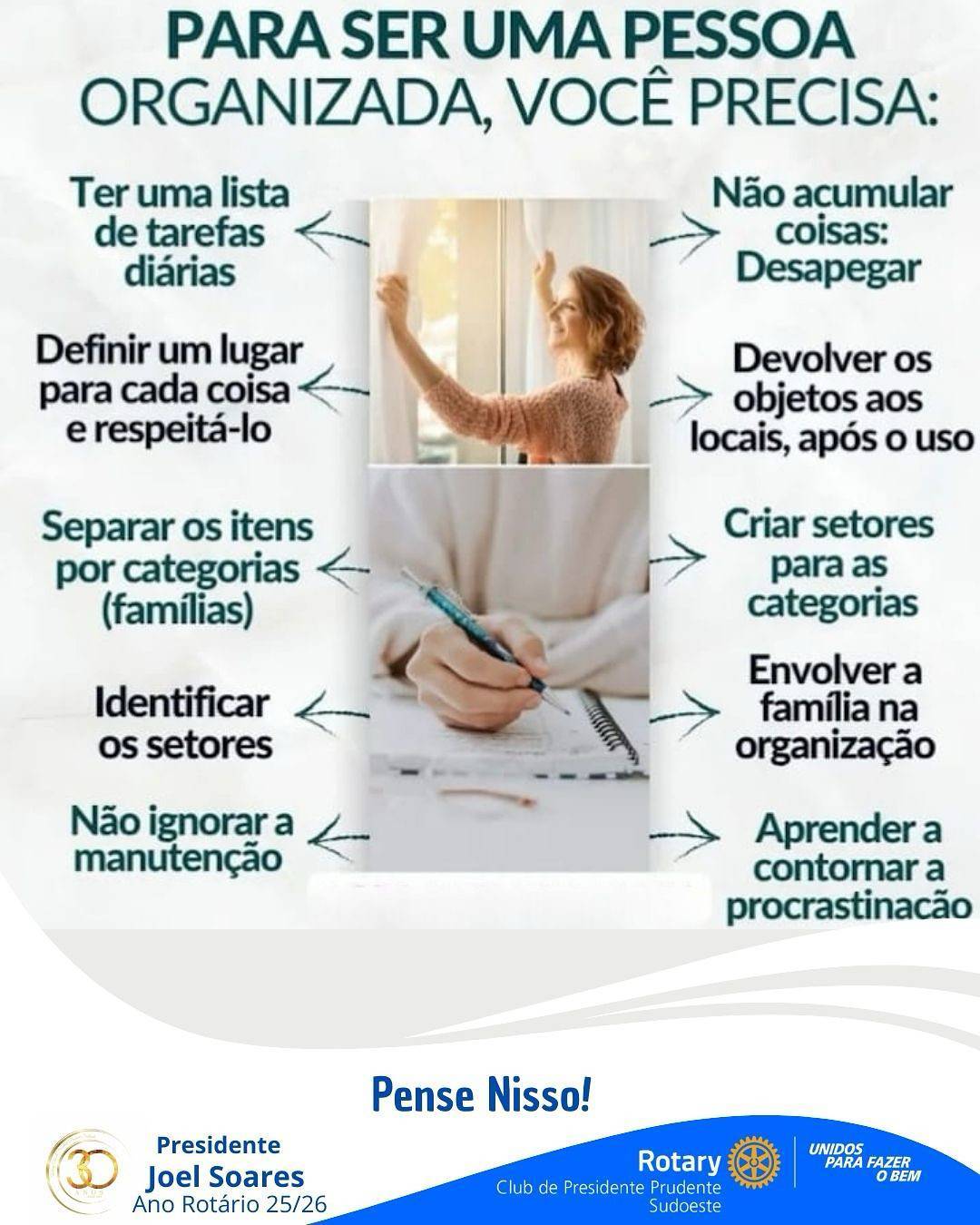 O Rotary Club de Presidente Prudente Sudoeste, por meio do quadro “Pense Nisso!”, compartilha orientações práticas que ajudam a transformar o caos em ordem — e a rotina em aliada.
