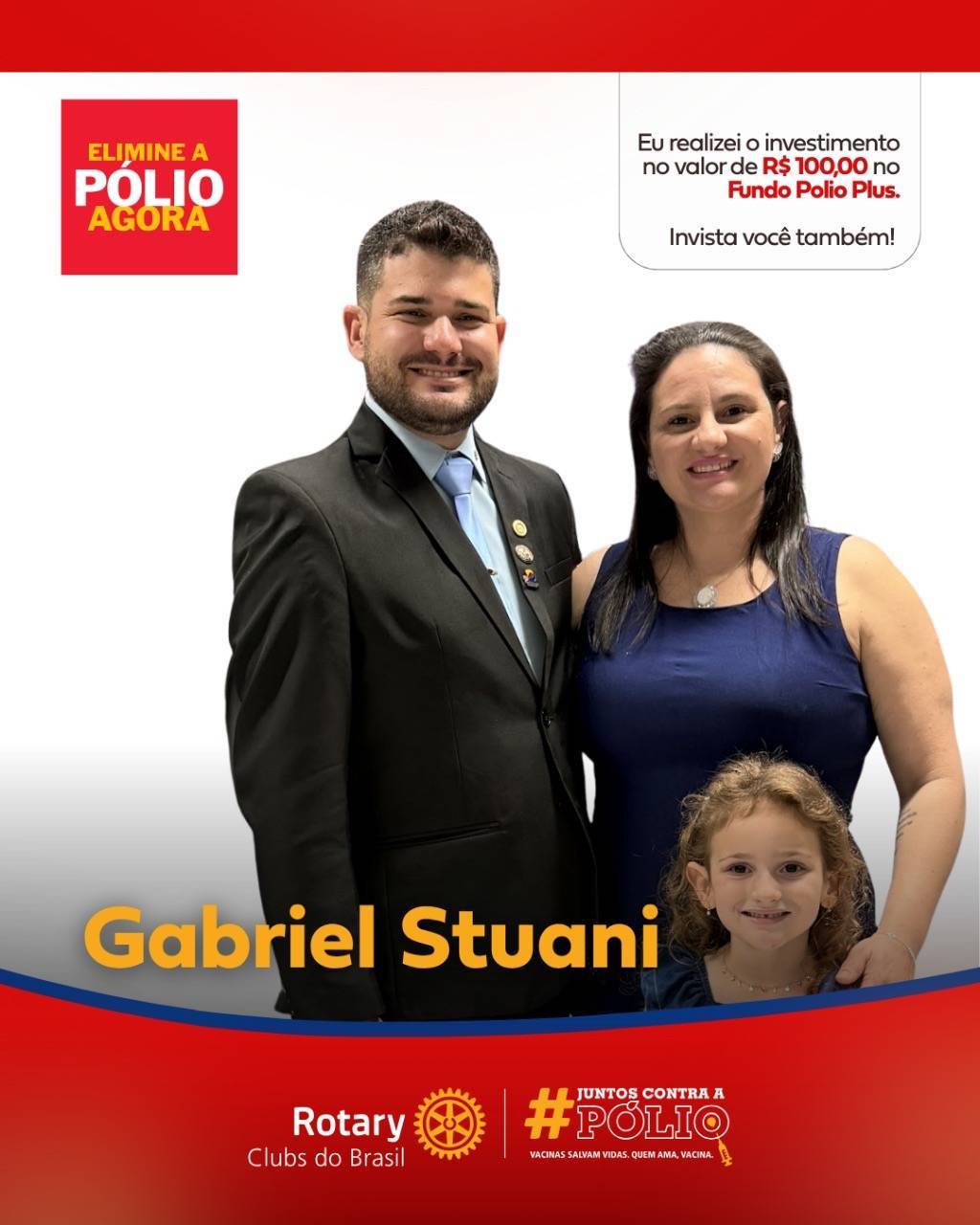 O Rotary Club de Presidente Prudente Sudoeste, sob a liderança do presidente Joel Viscaino Soares, tem orgulho de compartilhar a iniciativa do companheiro Gabriel Stuani, que realizou uma doação de R$100,00 ao Fundo Pólio Plus, contribuindo diretamente para a compra de vacinas, ações educativas e campanhas globais que salvam vidas.