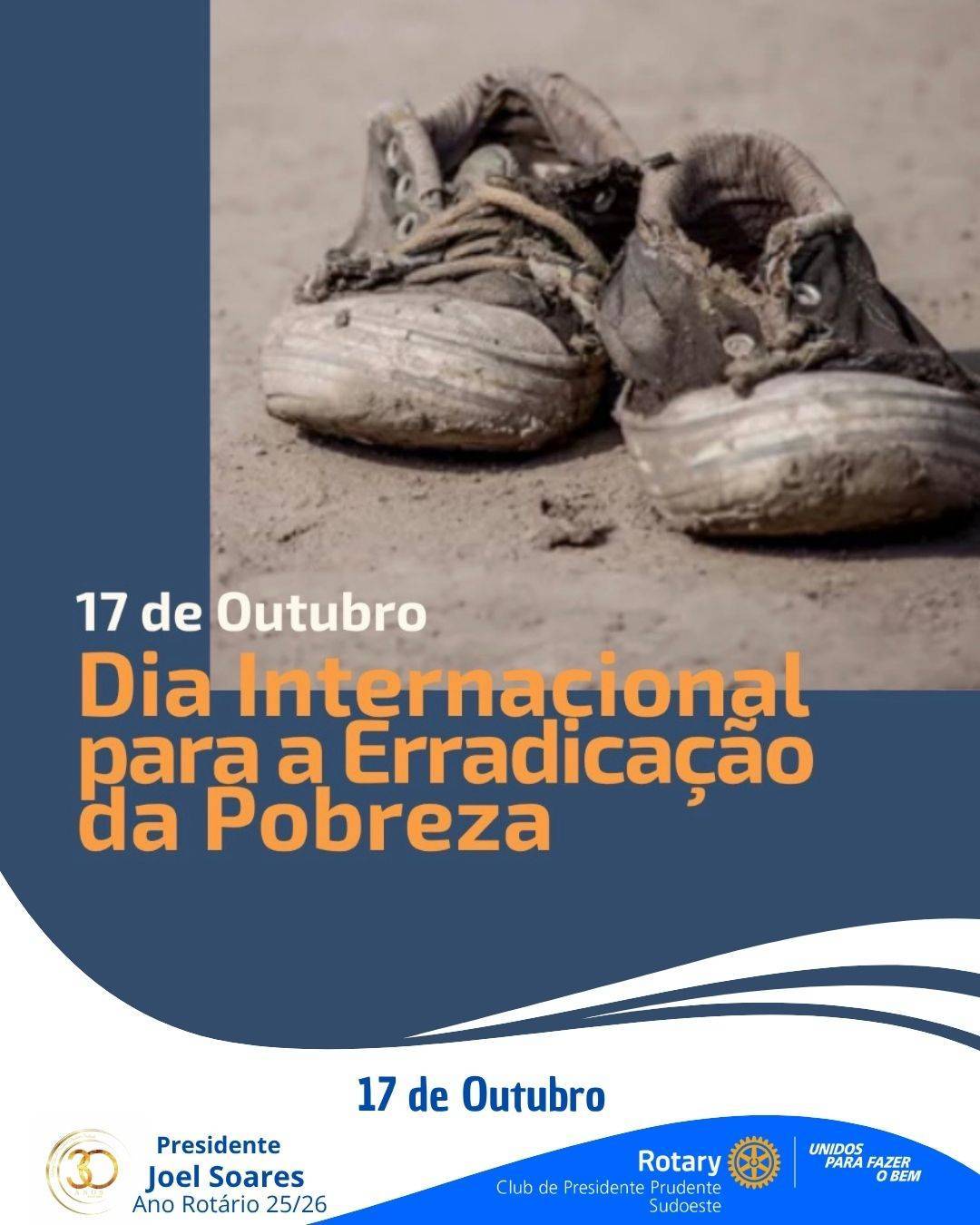 Neste 17 de outubro, o Rotary Club de Presidente Prudente Sudoeste se une à comunidade global para marcar o Dia Internacional para a Erradicação da Pobreza, data instituída pela ONU com o objetivo de promover a conscientização, o engajamento e a ação coletiva contra as desigualdades que ainda afetam milhões de pessoas em todo o mundo.