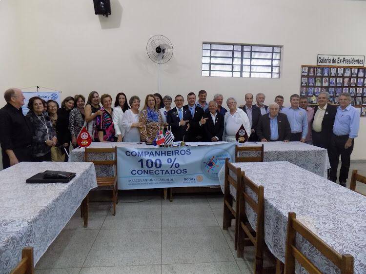 O momento foi registrado com a FOTO de exibição da faixa (banner) da campanha das metas do ano 2019-20, intitulada "COMPANHEIROS 100% CONECTADOS” da campanha “CONECTADO A FUNDAÇÃO ROTÁRIA”.
