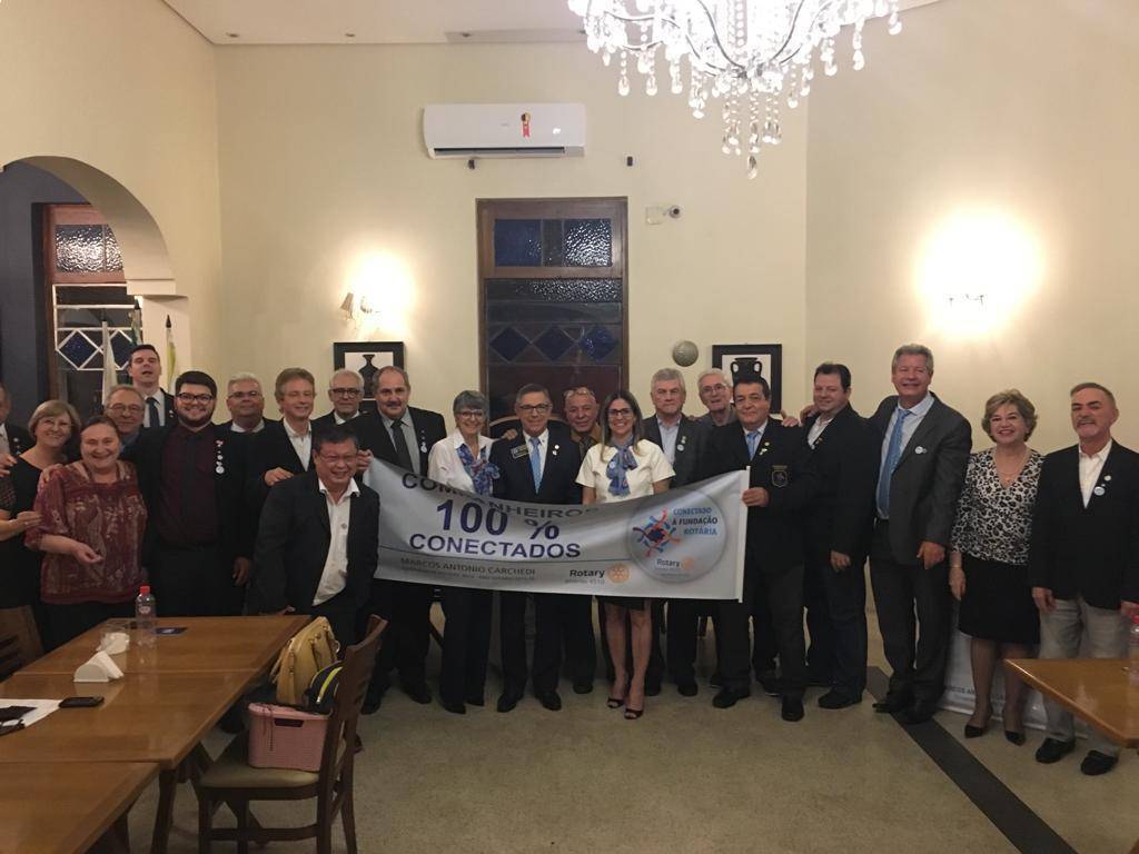 O momento foi registrado com a FOTO de exibição da faixa (banner) da campanha das metas do ano 2019-20, intitulada "COMPANHEIROS 100% CONECTADOS” da campanha “CONECTADO A FUNDAÇÃO ROTÁRIA”.