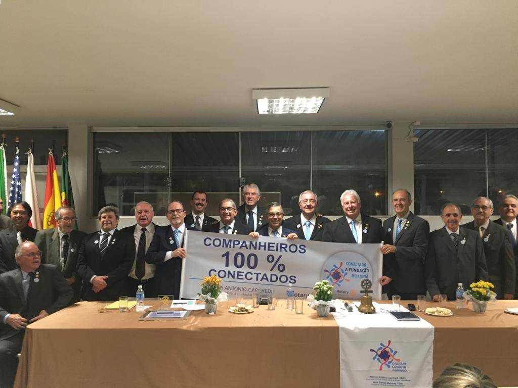 O momento foi registrado com a FOTO de exibição da faixa (banner) da campanha das metas do ano 2019-20,intitulada "COMPANHEIROS 100% CONECTADOS” da campanha “CONECTADO A FUNDAÇÃO ROTÁRIA”.