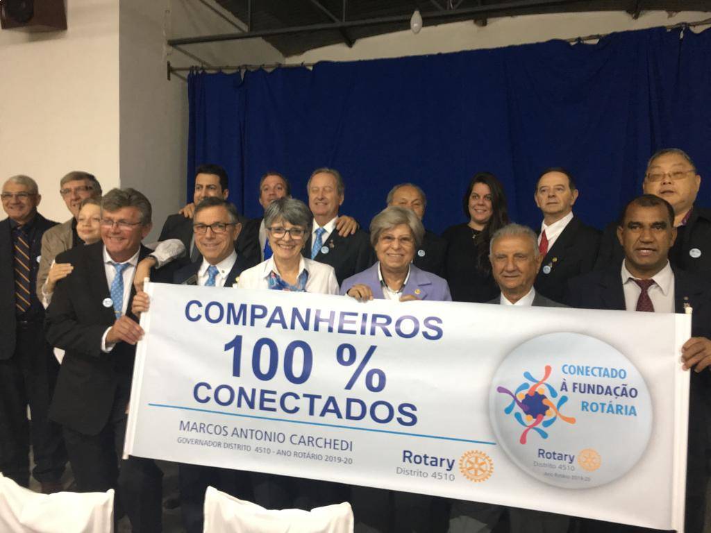 O momento foi registrado com a FOTO de exibição da faixa (banner) da campanha das metas do ano 2019-20, intitulada "COMPANHEIROS 100% CONECTADOS” da campanha “CONECTADO A FUNDAÇÃO ROTÁRIA”.