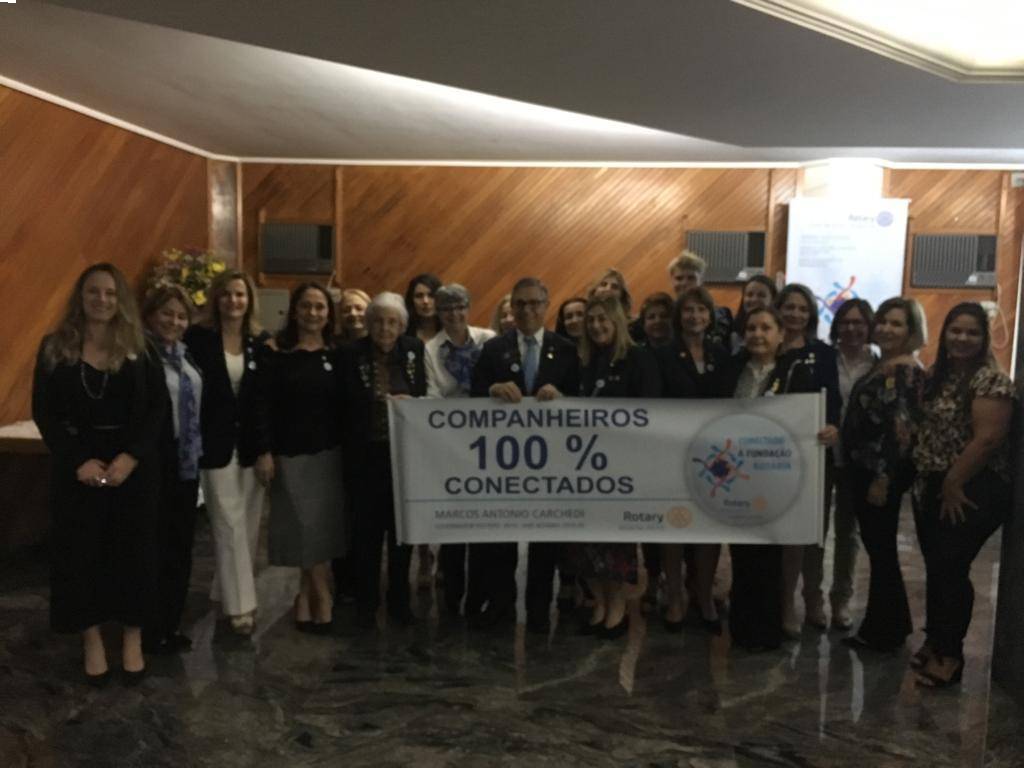 O momento foi registrado com a FOTO de exibição da faixa (banner) da campanha das metas do ano 2019-20, intitulada "COMPANHEIROS 100% CONECTADOS” da campanha “CONECTADO A FUNDAÇÃO ROTÁRIA”.