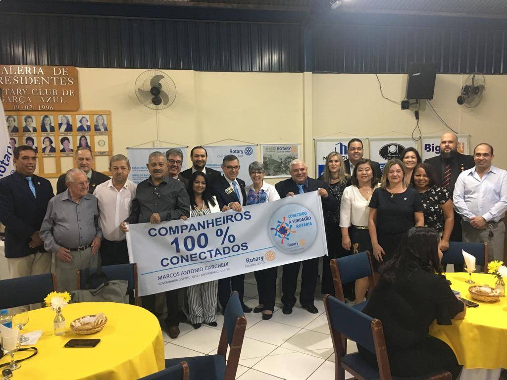 Em Visita Oficial no ROTARY CLUB DE GARÇA, realizada ás 20:00 horas do dia 28 de agosto de 2.019, do Governador Distrital 2019-20(D.4510) Marcos Antonio Carchedi e sua esposa Regina Mara Carchedi foi entregue os botons "CONECTADO A FUNDAÇÃO ROTÁRIA", aduzindo ao comprometimento de todos os companheiros do clube a fazer a doação de 100,00 US$ (dólares) anual para a Fundação Rotaria, no programa; TODOS OS ROTARIANOS TODOS OS ANOS.