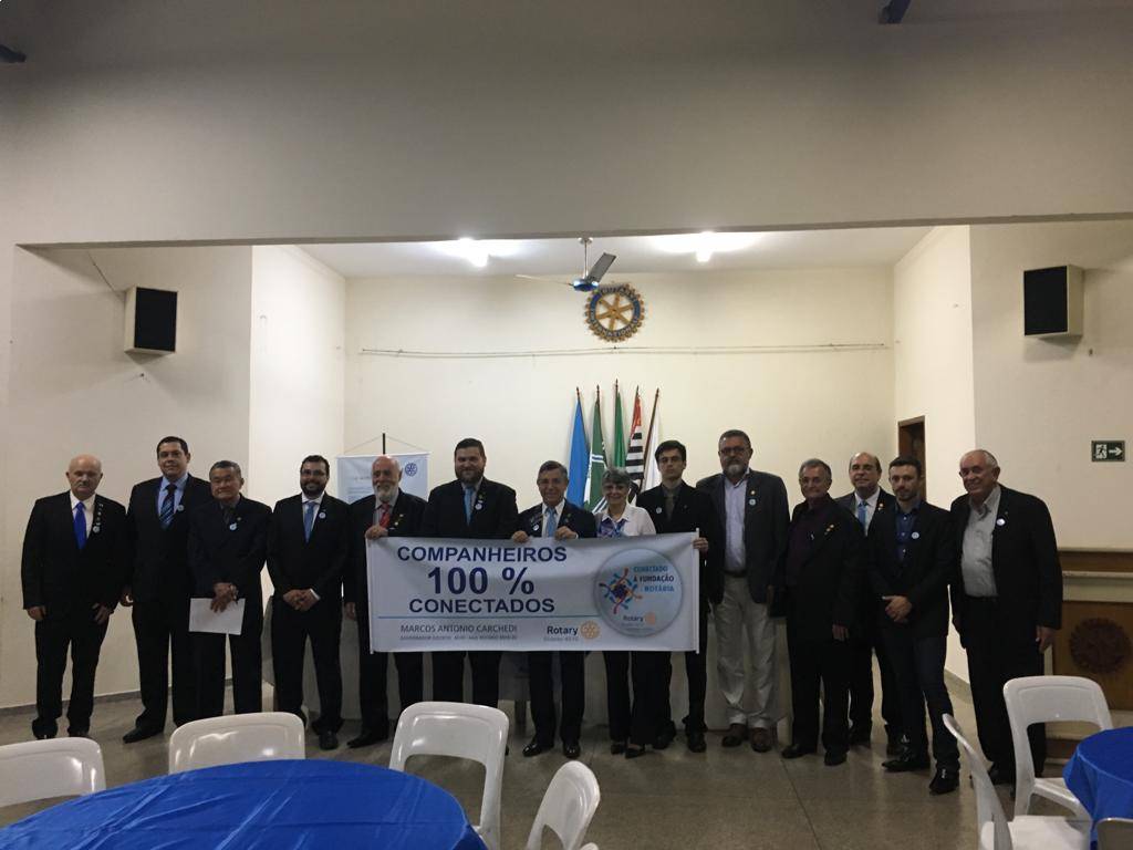 O momento foi registrado com a FOTO de exibição da faixa (banner) da campanha das metas do ano 2019-20, intitulada "COMPANHEIROS 100% CONECTADOS” da campanha “CONECTADO A FUNDAÇÃO ROTÁRIA”.