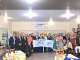 O momento foi registrado com a FOTO de exibição da faixa (banner) da campanha das metas do ano 2019-20, intitulada "COMPANHEIROS 100% CONECTADOS” da campanha “CONECTADO A FUNDAÇÃO ROTÁRIA”.